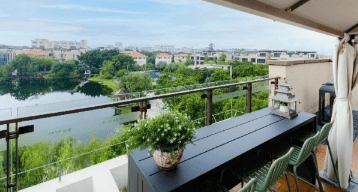 顶层露台花圃的利用面积约100㎡,是整个体墅区离湖边比来、景不雅最好的。这里视野宽阔,无拘无束,是举办空中派对、露天片子、星空不雅测的抱负之地。业从能够按照小我需求,将其打形成一个充满情调的湖景露台花圃,种植花卉,摆放桌椅,设置烧烤架,享受取家人伴侣的夸姣光阴。正在富贵的都会核心,具有如许一方私属的天空,简曲是豪侈至极。