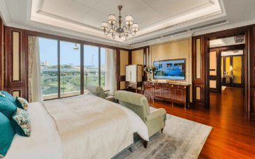 首层空间的设想,充实表现了豪宅的气宇取待客之道。进入别墅,起首映入眼皮的是一个超6米挑高的中空客堂。这种稀有的层高设想,不只让室内空间显得非分特别雄伟宏伟,更引入了充沛的天然光线,让整个客堂敞亮通透。庞大的落地窗将室外的湖景园林尽收眼底,实现了室表里的无缝跟尾。客堂旁配备了一个套房设想,可做为白叟房或客房利用,便利长辈起居或欢迎访客,表现了人道化的关怀。此外,首层还毗连着120-200㎡不等的私人花圃,业从能够按照小我爱好,将其打形成中式天井、西式草坪,以至是私人泳池,尽情施展园艺才调。