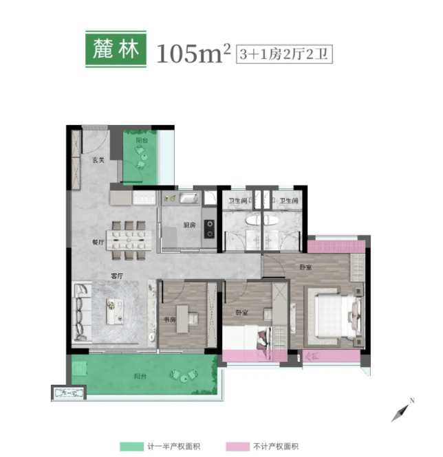 这款户型被称为“王牌户型”,完满均衡了舒服度取适用性。全南向四开间设想,三个卧室朝南,从卧带卫生间,私密性极佳。典范的竖厅结构,南北通透,空气对流顺畅。约5。6米的L型大阳台,超11米的南向展面,让您正在客堂就能赏识到斑斓的园林景色。无论是三口之家仍是二胎家庭,这款户型都能满脚您的需求。